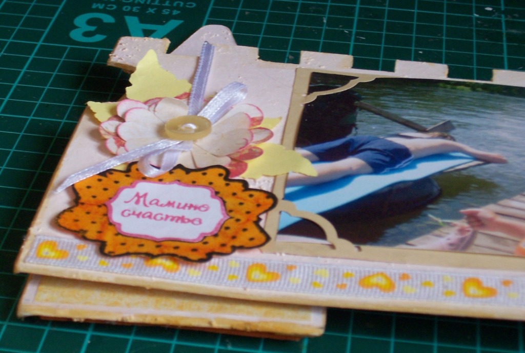 вот эта страница мне далась тяжелее всего, никак не могла придумать чего тут сделать и как ее украсить, так что получилось так...